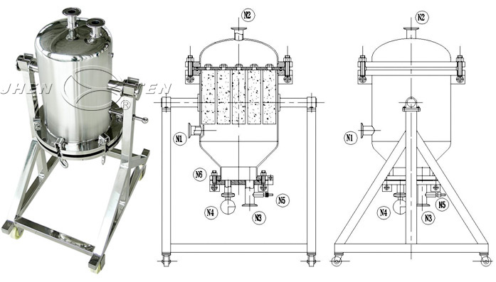 筒體全部采用優(yōu)質(zhì)304或316L不銹鋼材料制造,筒體采用法蘭連接方式,主要用于工業(yè)領(lǐng)域脫碳過濾及高氧化性溶液的過濾