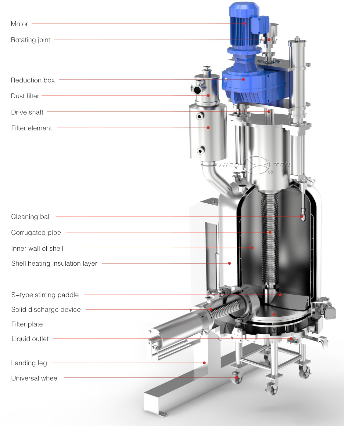 JTNB Agitated Nutsche Filter Dryer is a high-quality equipment designed for solid-liquid separation processes, by filtration under pressure and vacuum drying, can be use for the pharmaceutical, chemical, fine chemical and food industries.